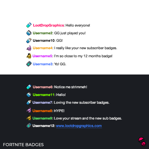 This subscriber badge package is inspired by Fortnite Battle Royale and will make a great addition to any Fortnite streamers chat.