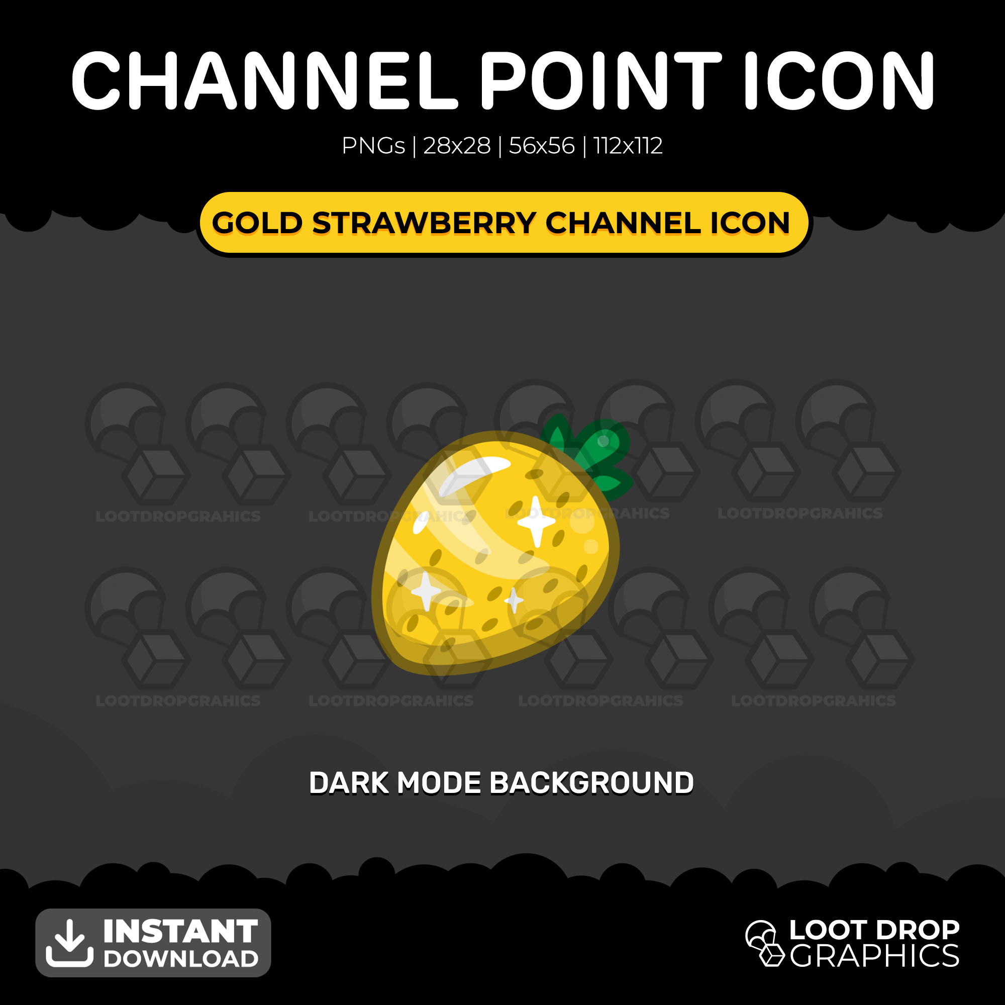 This listing is for one Gold Strawberry Twitch Channel Points Icon. These graphics are a great way to show off your channel points and how to redeem them.